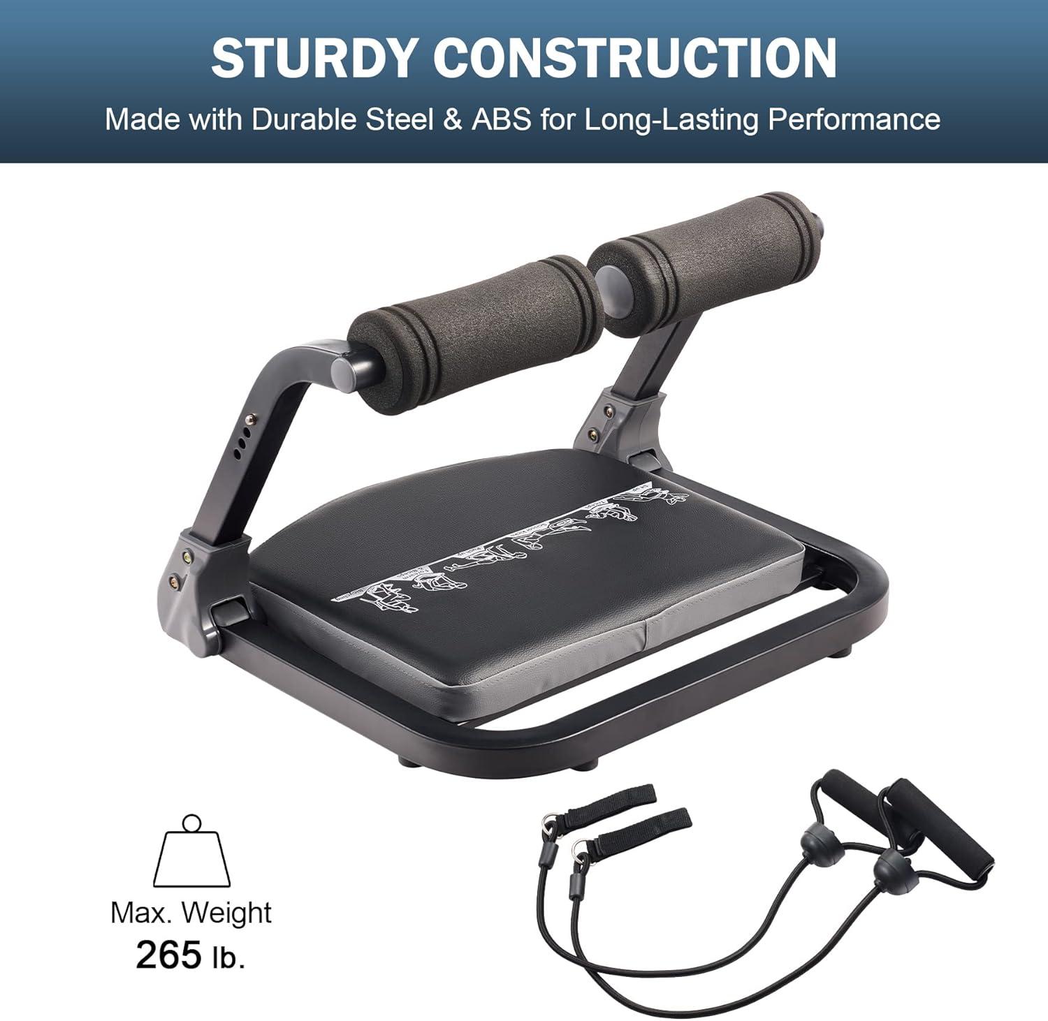 DURABLE CONSTRUCTION: Our ab crunch machine boasts a heavy-duty steel frame and sturdy ABS plastic connections for superior strength and endurance, easily supporting up to 265 pounds